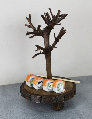 Подставки бонсай на срезе дерева для подачи суши. Доски деревянные для суши. Подставки из натурального дерева и природных веток.