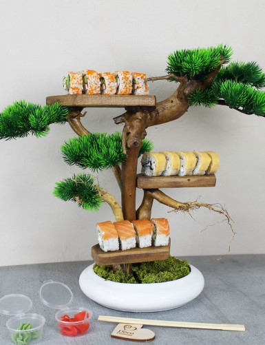 Новый товар Out-of-Stock favorite_border cached Add to Wishlist equalizer cached Добавить к сравнению Быстрый просмотр doski-dlya-podachi-sushi Подставка деревянная для подачи роллов, суши и кондитерских изделий Декоративная подставка изготовлена из деревянных реек, природной коряги и искусственных веток сосны. Размеры подставки 50х30х45 см. 1 600 грн. Цена